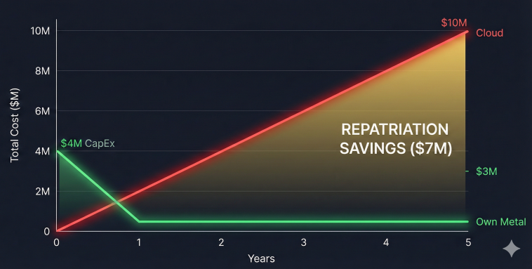 If your startup is growing 100% MoM, stay in the Cloud. You need the flexibility. But if you are a mature SaaS with predictable workloads spending >$1M/year, you are likely overpaying by 50% or more just to avoid “hardware.”